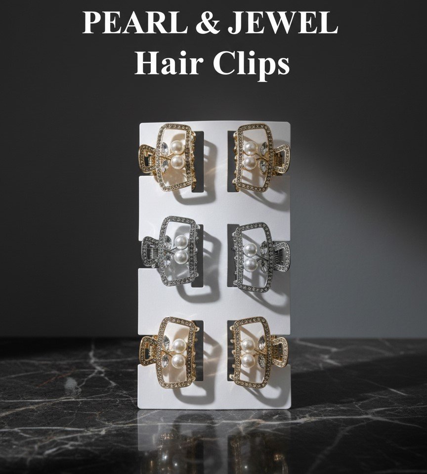 Add a touch of refined glamour to your hairstyle with Pearl & Jewel Hair Clips. Designed with a structured claw silhouette, sparkling crystal accents, and classic pearl embellishments, these clips bring a jewellery-inspired elegance to any look.