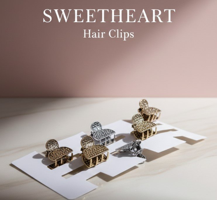 Turn heads with the dazzling charm of Sweetheart Hair Clips. Featuring a sculpted sweetheart silhouette adorned with shimmering crystal studs, these claw clips bring a jewellery-inspired glow to your hairstyle.